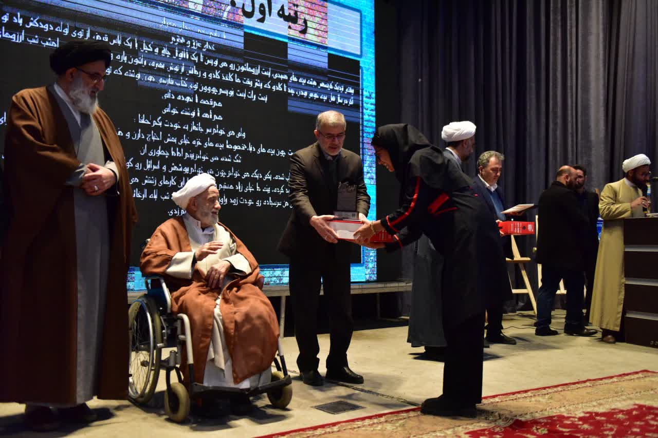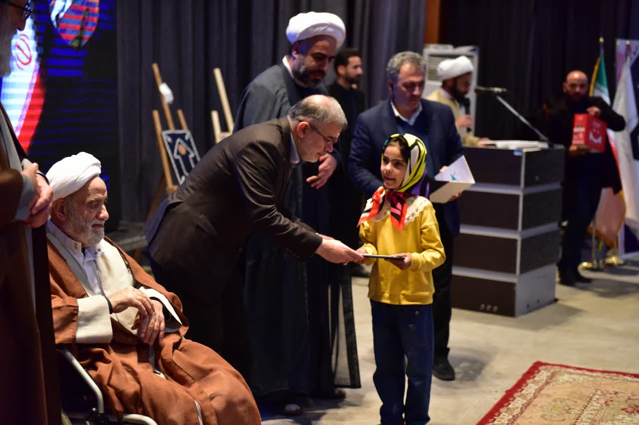 و در پایان مقرر شد: با توجه به آثار رسیده به دبیرخانه جشنواره که بالغ بر ۶۰۰ اثر بود در دو گروه سنی بالای ۱۵ سال و زیر ۱۵ سال و داوری این آثار توسط هیئت داوران، با تقدیم هدیه و تفسیر قرآن یک جلدی استاد قرائتی از ایشان تقدیر گردد.