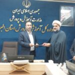 و در پایان حکم ریاست شورای اقامه نماز استان که توسط وزیر آموزش و پرورش امضا گردیده است را ، مرادی مدیر ستاد اقامه نماز به شعبانی مدیرکل آموزش و پرورش استان البرز اهدا کرد.