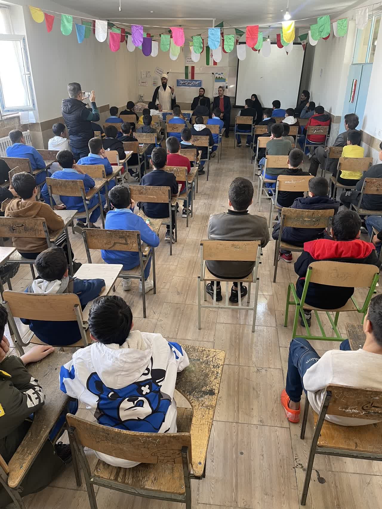 به گزارش روابط عمومی ستاد اقامه نماز استان آذربایجان غربی، روز دوشنبه بیست و سوم بهمن ماه به همت این ستاد ویژه برنامه دهه فجر با موضوع انقلاب اسلامی و نماز نسل نو باحضور و سخنرانی حجت الاسلام حسنی دبیر اقامه نماز ورزش و جوانان استان در دبستان پسرانه باقرالعلوم ارومیه با حضور عبدی کارشناس برنامه ریزی، نظارت و ارزیابی ستاد استان و موتاب کارشناس فرهنگ،آموزش و پژوهش و استقبال پرشور دانش آموزان و معلمان گرامی برگزار شد.
