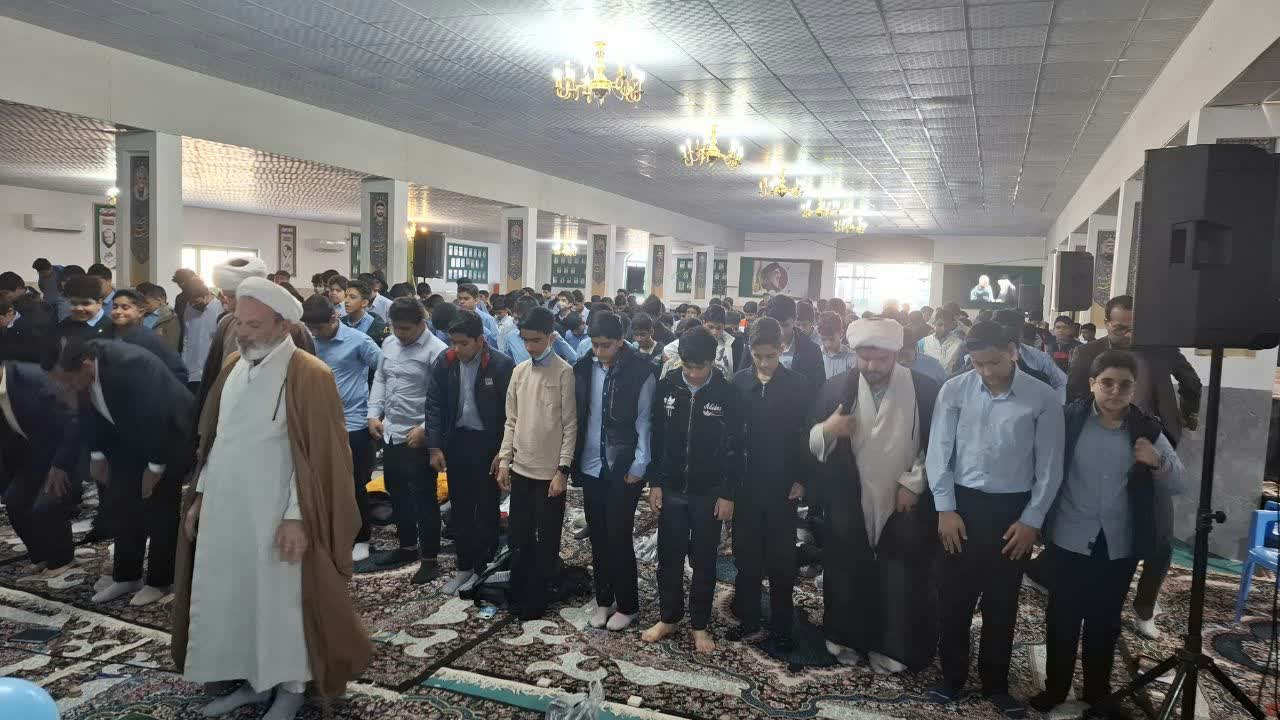 درپایان دانش آموزان مکلف پیمان نامه تکلیف را قرائت و فریضه ظهر و عصر را به امامت حجت الاسلام والمسلمین علی آبادی دبیرستاد اقامه نماز به جماعت اقامه کردند.