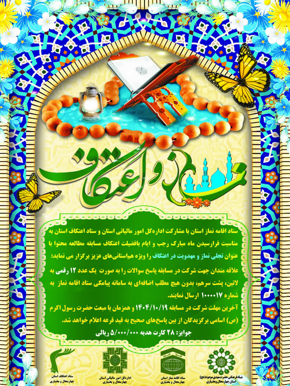 فراخوان مسابقه «نماز و اعتکاف» در چهارمحالوبختیاری منتشر شد