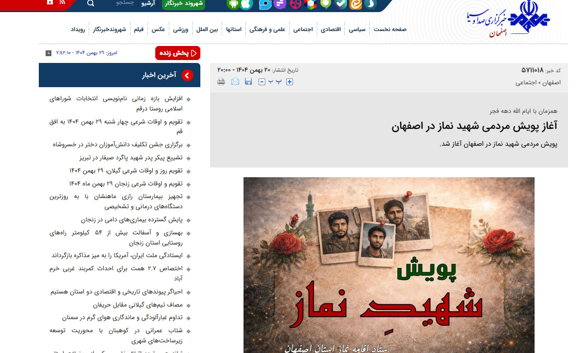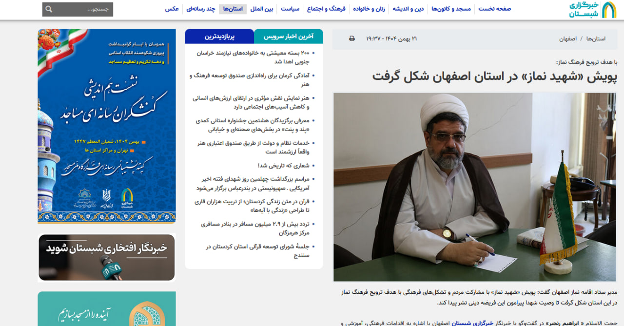 مدیر ستاد اقامه نماز استان اصفهان یکی از برنامه های شاخص دهه فجر را پویش شهید نماز عنوان کرد و افزود: این پویش با هدف معرفی شهدایی که در میدان نبرد یا در مسیر دفاع از ارزش ها در حال اقامه نماز به شهادت رسیده‌اند، برگزار شد و تلاش کردیم نسل جوان با این الگوهای نورانی آشنا شود و بداند که نماز در نگاه شهدا چه جایگاهی داشته است.