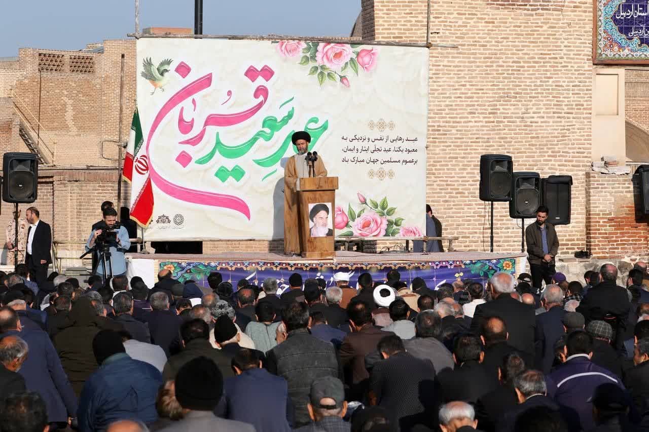 به گزارش روابط عمومی ستاد اقامه نماز استان اردبیل، آیت الله سیدحسن عاملی در خطبههای نماز عید قربان که در روز جمعه شانزدهم خردادماه در محل شهیدگاه بقعه شیخ صفیالدین اردبیلی اقامه شد، اظهار داشت: اگر عید قربان به معنای واقعی عید قربان بود، ما تحریم نمی شدیم و مردم مسلمان غزه به این روز نمیافتادند و سرمایه مسلمانان توسط ترامپ چپاول نمیشد تا در اختیار صهیونیستهای کودک کش قرار گیرد.