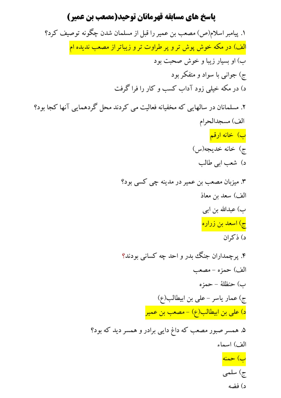 جهت مشاهده پاسخ های صحیح مسابقه قهرمانان توحید قسمت سی و چهارم اینجا کلیک فرمایید