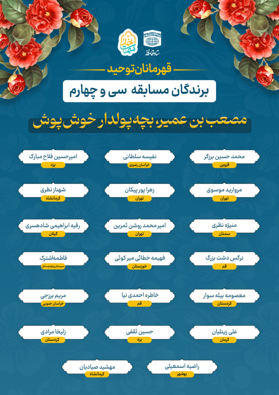 جهت مشاهده برگزیدگان مسابقه قهرمانان توحید قسمت سی و چهارم اینجا کلیک فرمایید.