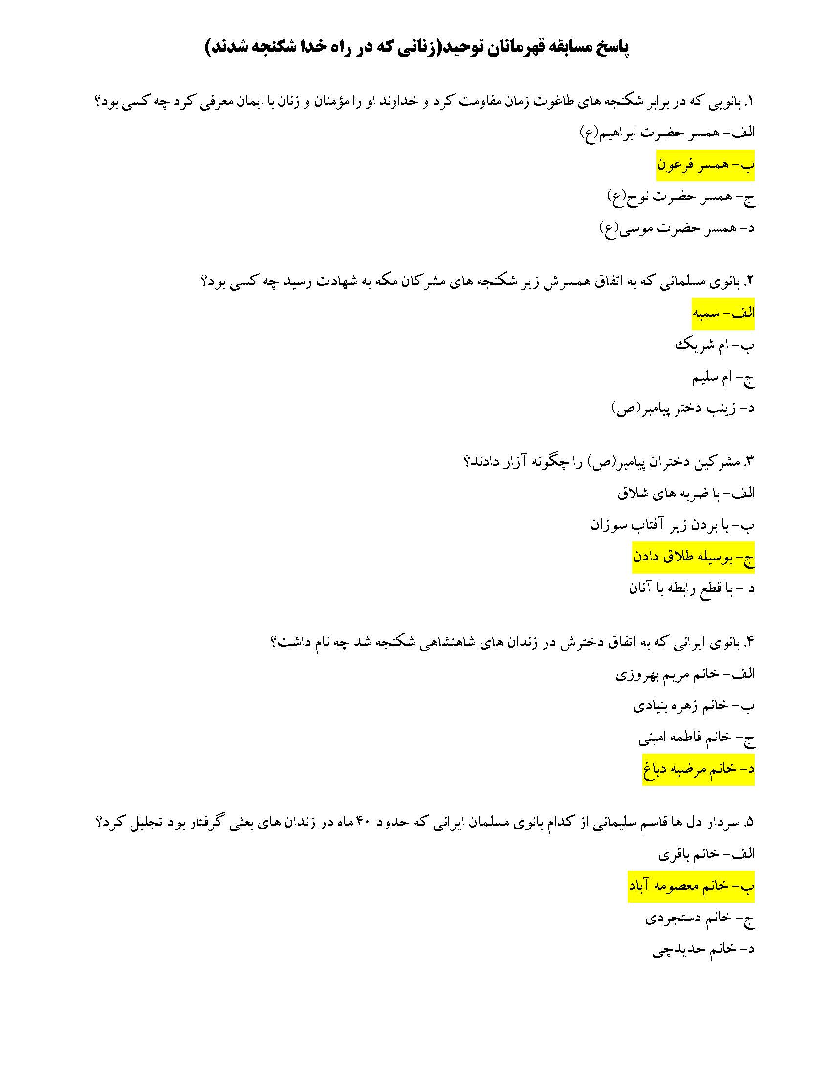 جهت مشاهده پاسخ های صحیح مسابقه قهرمانان توحید قسمت سی و هشتم اینجا کلیک فرمایید.