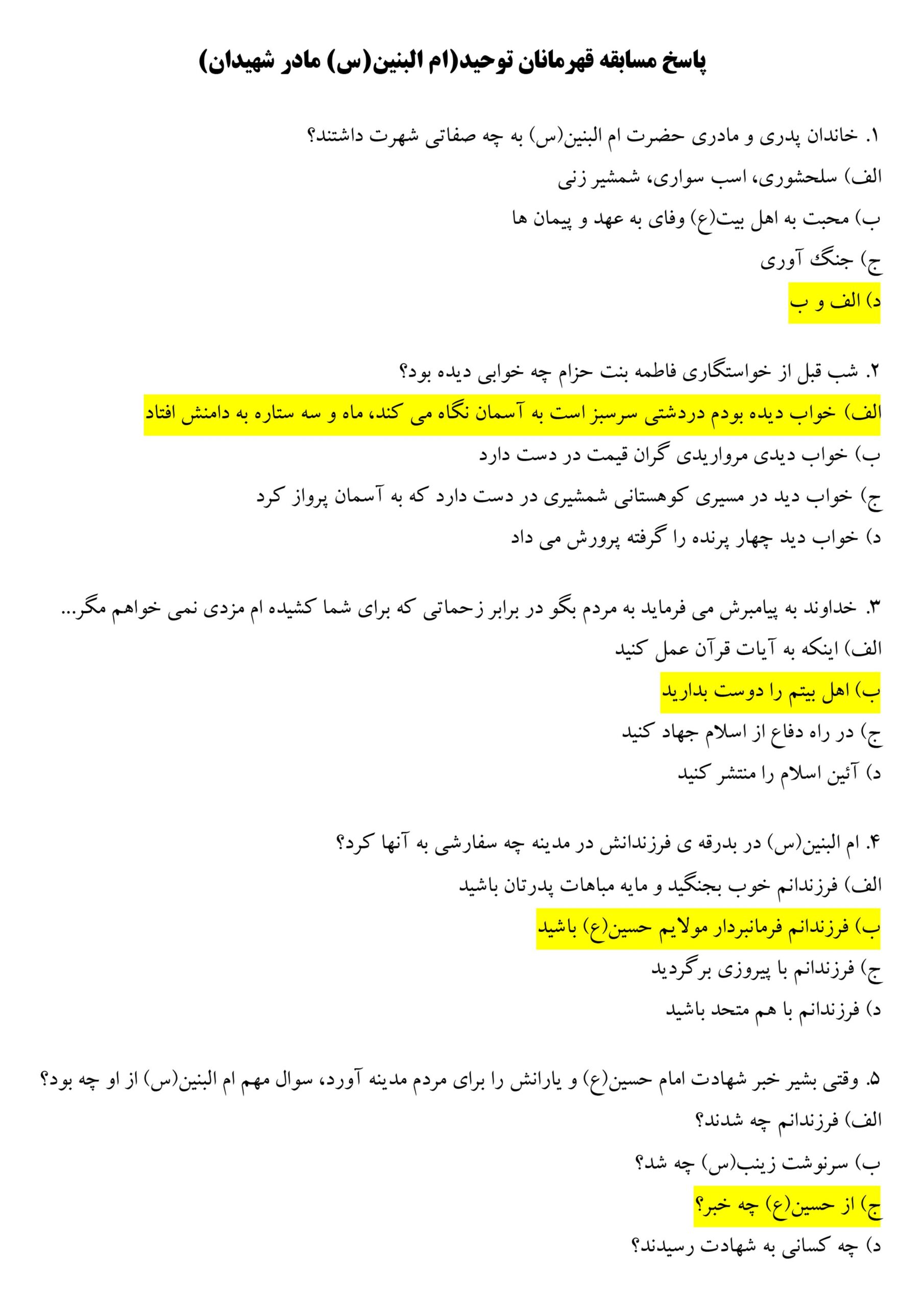 جهت مشاهده پاسخ های صحیح مسابقه قهرمانان توحید قسمت چهل و یکم اینجا کلیک فرمایید.