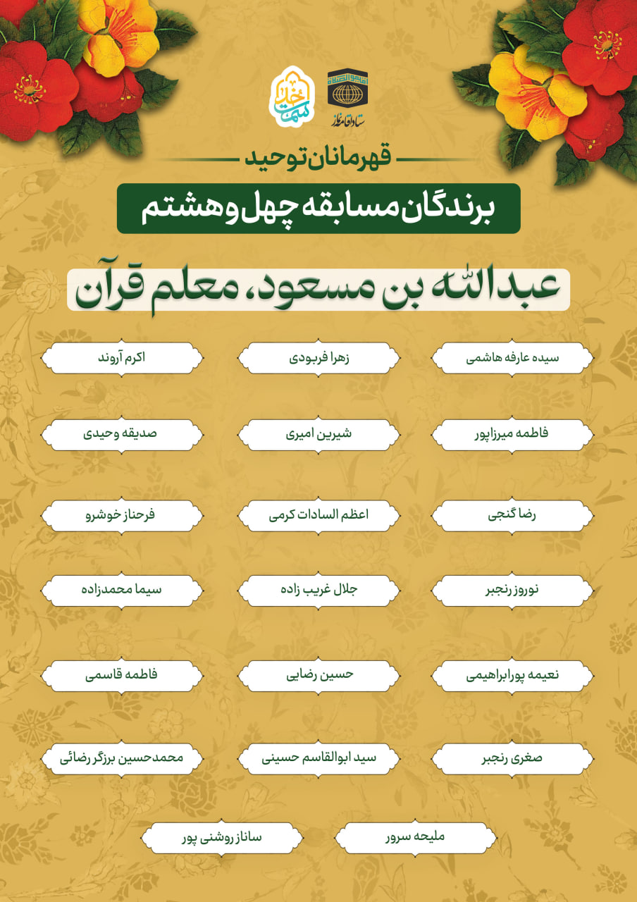جهت مشاهده برگزیدگان مسابقه قهرمانان توحید قسمت چهل و هشتم اینجا کلیک فرمایید‌.