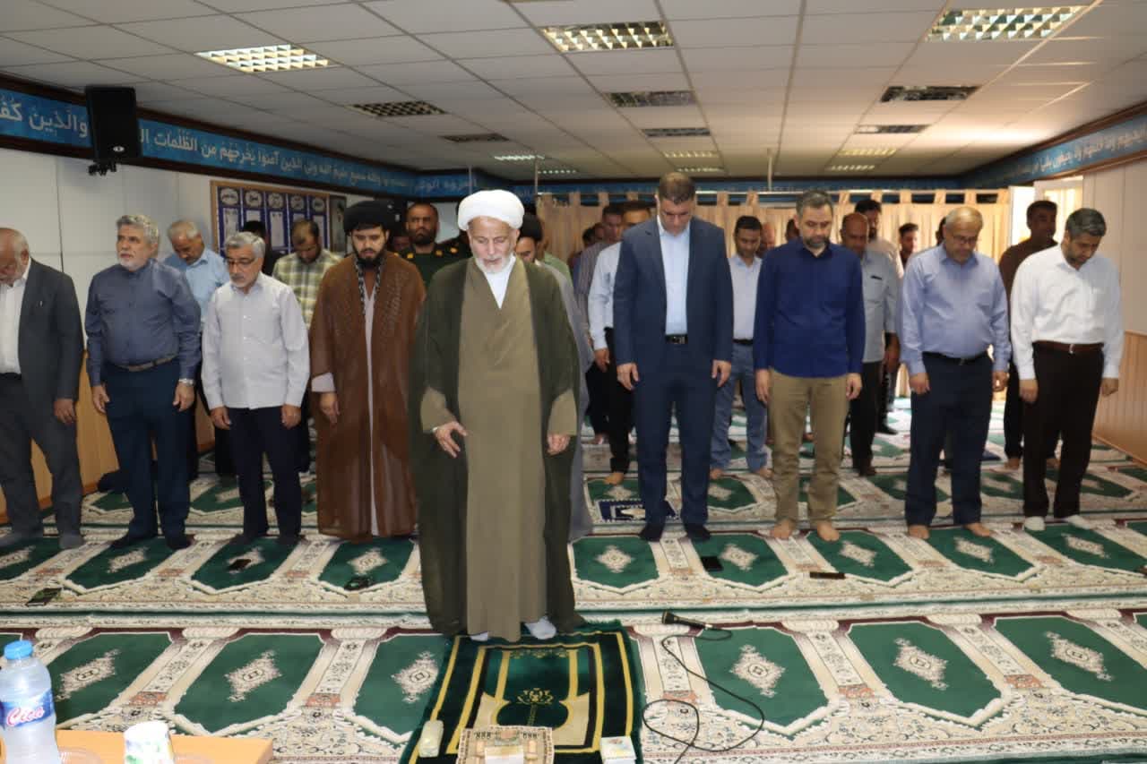 این مراسم با حضور بلادیان مدیر و کارشناس فرهنگی آموزشی استان، رئیس دفتر امام جمعه مرکز استان، مدیر عامل شرکت شهرکهای صنعتی خوزستان و رئیس دفتر نمایندگی ولی فقیه در استان و امام جمعه مرکز اهواز برگزار شد.