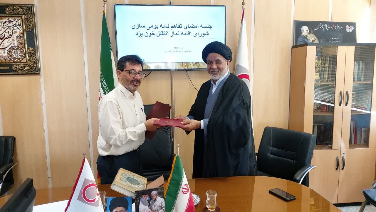 به گزارش روابط عمومی ستاد اقامه نماز استان یزد، جلسه امضای تفاهم نامه ستاد اقامه نماز استان یزد و سازمان انتقال خون استان در سال ۱۴۰۴، با حضور حجت الاسلام موسوی مدیر ستاد اقامه نماز و سید محمدرضا آقایی مدیر کل انتقال خون استان در روز دوشنبه دوم تیرماه ماه، در دفتر مدیر کل این اداره برگزار شد.
