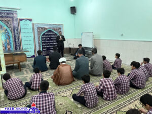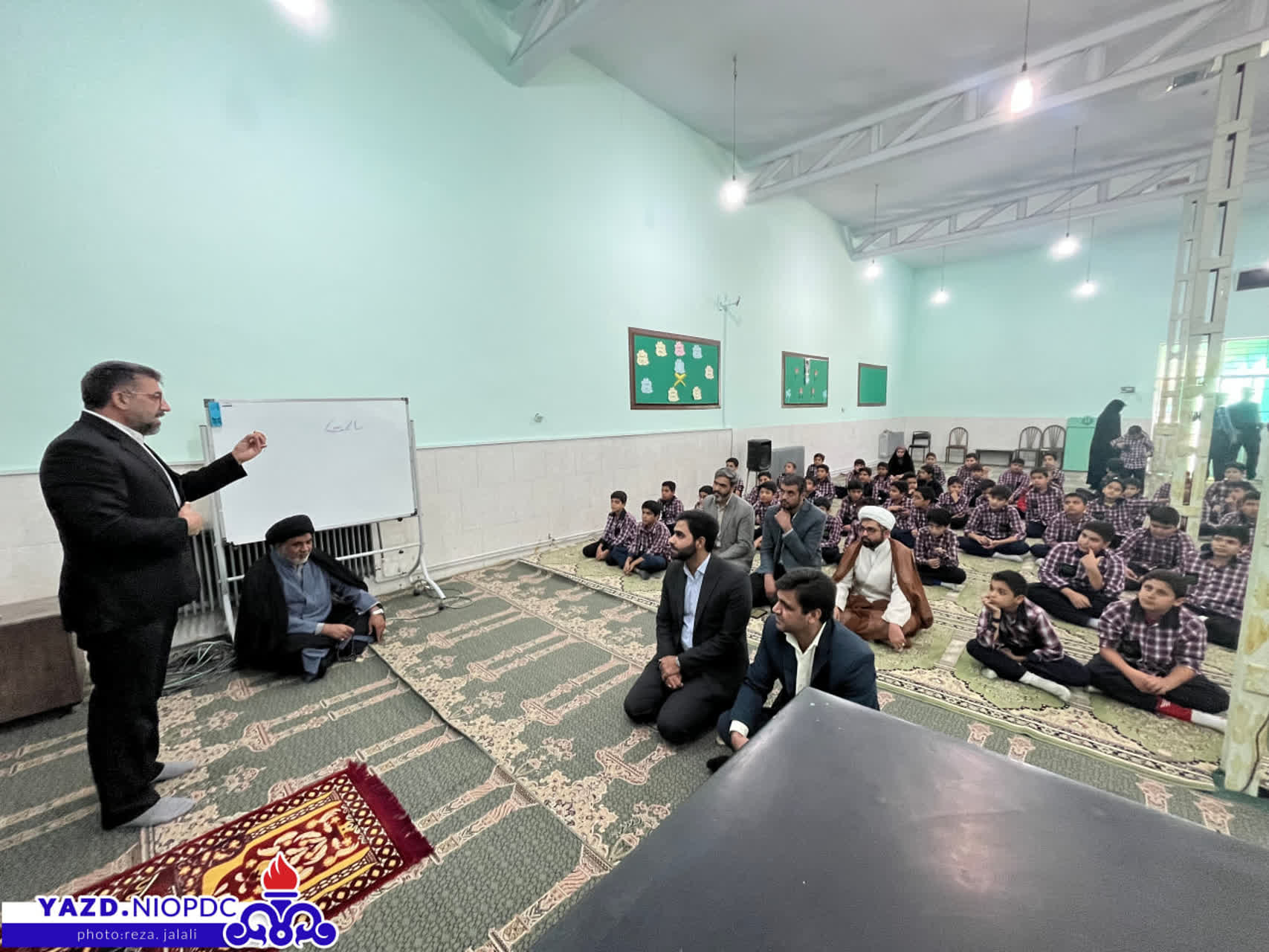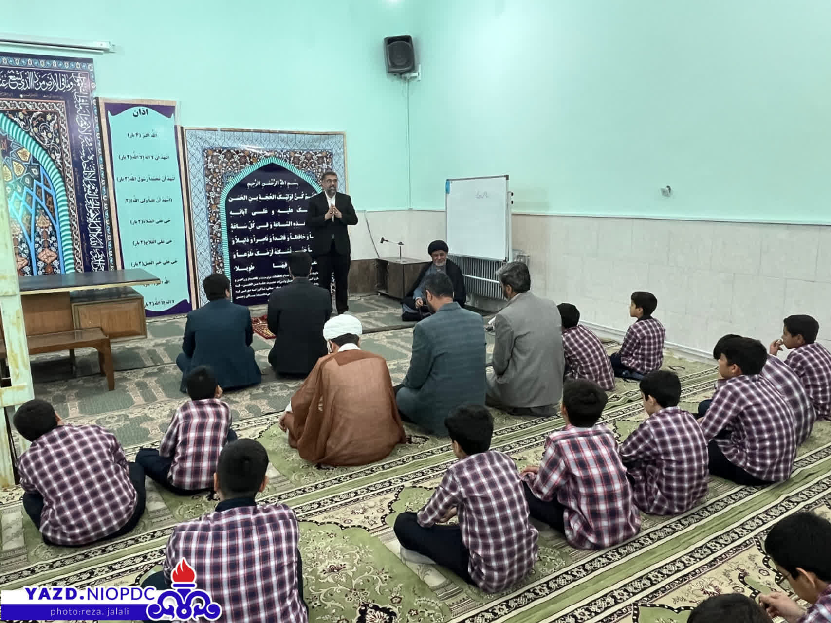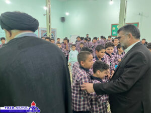 حجت‌الاسلام موسوی مدیر ستاد اقامه نماز به همراه سید باقر نورالدینی مدیر عامل شرکت ملی پخش فرآورده های نفتی منطقه یزد در دبستان پسرانه سید علی جلالیان یزد حضور یافتند.