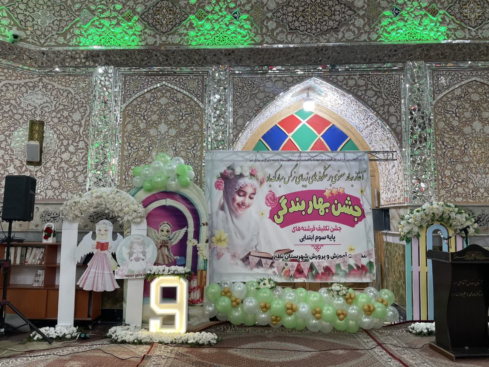 به گزارش روابط عمومی ستاد اقامه نماز استان اصفهان، جشن بزرگ تکلیف دانش آموزان پایه سوم ابتدایی دختران شهرستان نطنز با حضور پرشور نونهالان، خانواده ها و جمعی از مسئولان فرهنگی و آموزشی روز سه شنبه هفتم بهمن ماه در فضای معنوی آستان مقدس آقا علی عباس و شاهزاده محمد(علیهما السلام) برگزار شد.