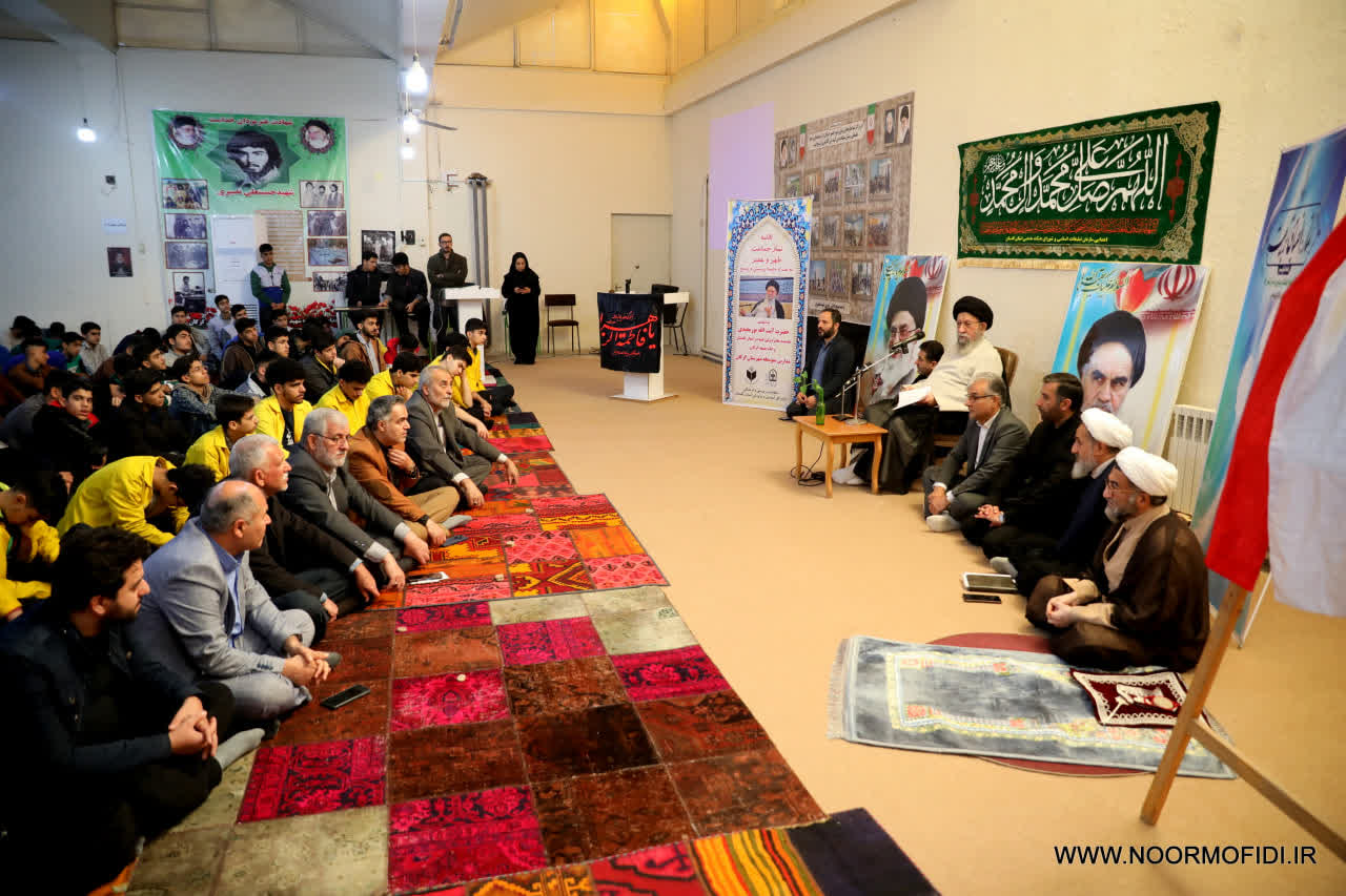 آیتالله نورمفیدی سخنانش را با گرامیداشت شهید نصیری آغاز کرد و با اشاره به نقش بیبدیل جوانان در پیشرفت کشور گفت:«شهید فخریزاده و شهید شهریاری نیز روزی دانشآموز بودند؛ با تلاش و علم به قله رسیدند و سرمایه ملی شدند. امروز کشور بیش از هر چیز به نخبگان نیاز دارد.»