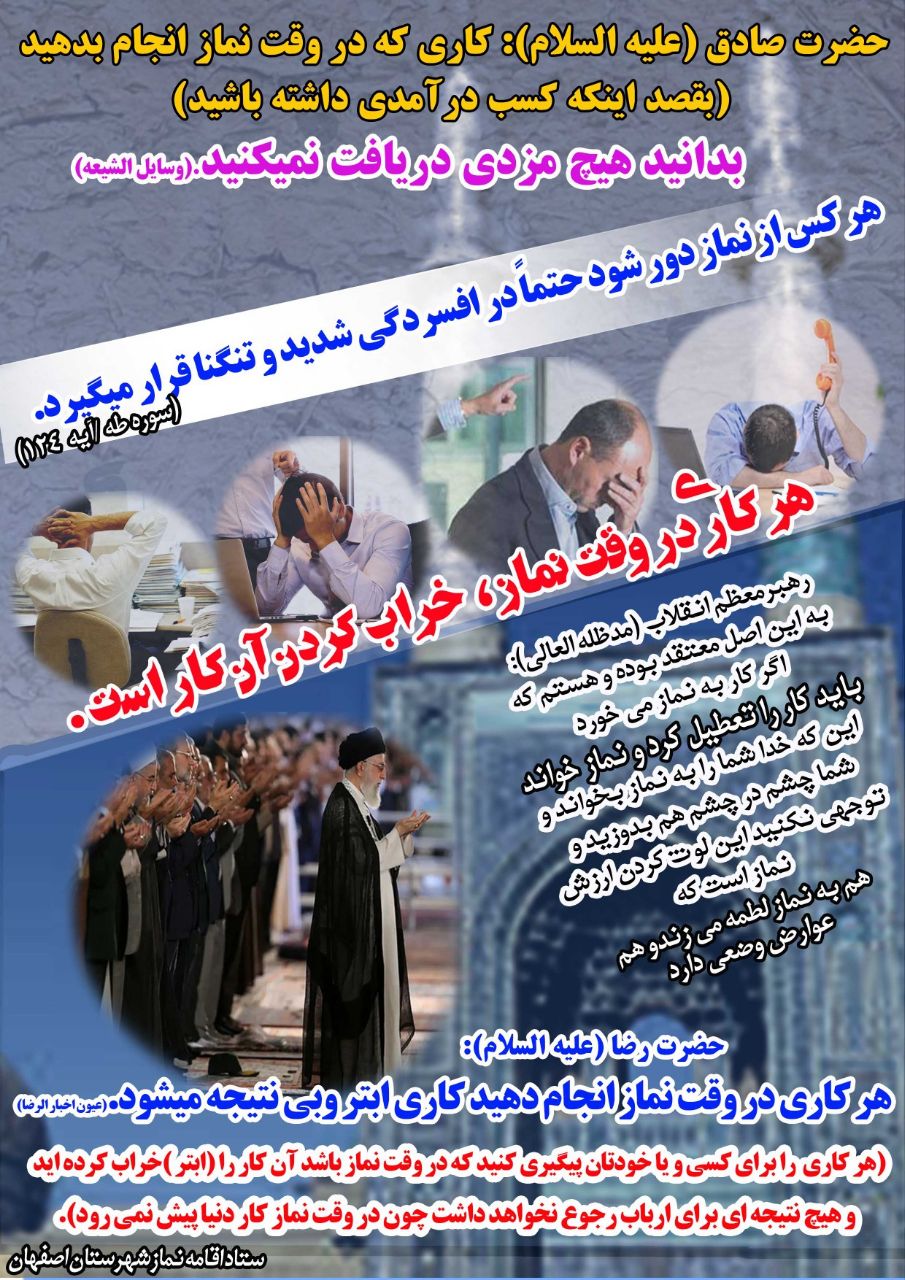 به گزارش روابط عمومی ستاد اقامه نماز استان اصفهان، حجت الاسلام والمسلمین بهرام مؤذن دبیر ستاد اقامه نماز استان اصفهان بیان کرد: در راستای ترویج فرهنگ نماز و ارتقای معنویت در محیط های اداری و عمومی، ستاد اقامه نماز شهرستان اصفهان با همکاری فرمانداری این شهرستان اقدام به تهیه و نصب مجموعه ای از پوسترهای فرهنگی با موضوع نماز کرده و این اقدام با هدف تشویق کارمندان ادارات و ارباب رجوع به اقامه نماز و توجه بیشتر به این فریضه الهی صورت گرفته است.